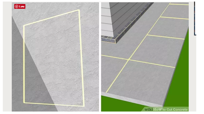Bạn cần phải sử dụng một đường phấn và hộp để đánh dấu một đường thẳng vào bê tông. Đây là khu vực được cắt.