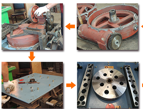 Hệ thống bánh răng dưới mâm máy uốn sắt