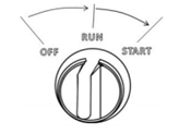 Không giữ công tắc ở vị trí "START" trong hơn 5 giây, hoặc bộ khởi động có thể bị hỏng. Nếu động cơ không khởi động lần đầu tiên, hãy thử khởi động lại sau khi chờ 10 giây tạm dừng. Nếu tốc độ quay số bắt đầu giảm dần theo thời gian, có nghĩa là bạn sẽ phải sạc pin. |